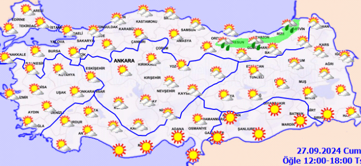 Meteoroloji Genel Müdürlüğü tarafından son tahminlere göre: Ülkemizin kuzeydoğu kesimlerinin parçalı bulutlu, Ordu, Giresun, Trabzon ve Rize’nin...