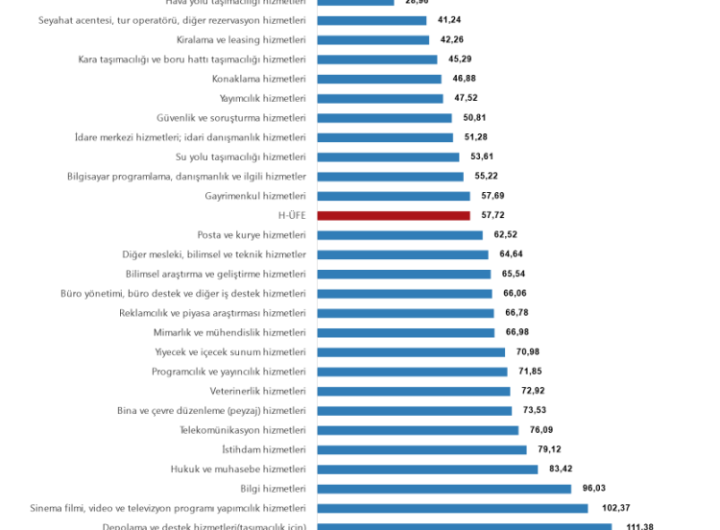 TÜİK’in açıkladığı Ağustos ayına ilişkin Hizmet Üretici Fiyat Endeksi (H-ÜFE) yıllık yüzde 57,72 arttı, aylık yüzde 2,62...
