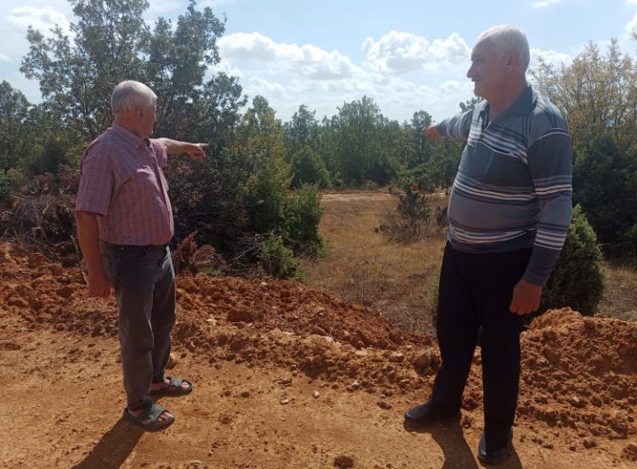 Paşayiğitli Ergün Sürücü ve Hüseyin Yörük tarlalarına giden yolun kapanmasından dolayı tarlalarındaki ayçiçeklerini hasat edemiyorlar. Erdoğan DEMİR...