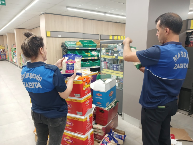 Şehmus EDİS / MARDİN (İGFA) – Mardin Büyükşehir Belediyesi Zabıta Daire Başkanlığına bağlı zabıta ekipleri, halkın sağlığını korumak ve haksız kazancın önüne geçmek amacıyla kent genelinde zincir marketlere yönelik denetimler gerçekleştirdi. Bu denetimlerde tarihi geçmiş ürünler, ürünlerde kurtlanma, reyon ve kasa fiyat tutarlılığı ile hijyen koşulları kontrol edildi.