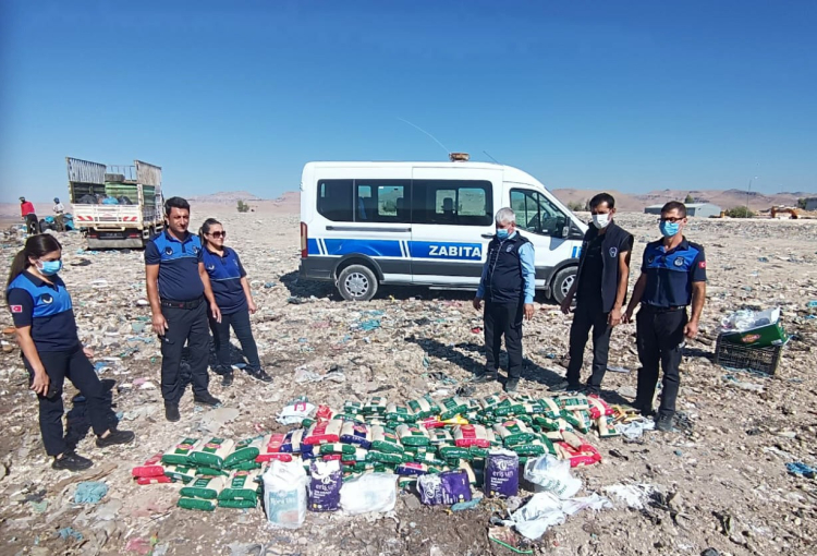 Zincir market hakkında cezai işlem uygulayan zabıta ekipleri daha sonra gıda ürünlerini imha etti.
