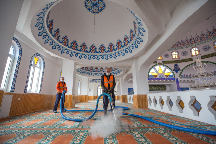 Eylül ayı boyunca süren çalışmalar kapsamında, gelişmiş sistemlerle camiler ve cemevleri titizlikle temizlendi. İleri teknolojiye sahip makinelerle yapılan temizliklerde halılar, 90 derece sıcaklıkta su ile yıkandı. Yıkama işleminin ardından halıların tüyleri alınıp, kurutuldu. Bakterilere karşı dezenfeksiyon işlemi uygulanarak vatandaşlara ibadetleri için hijyenik ortamlar sağlandı.