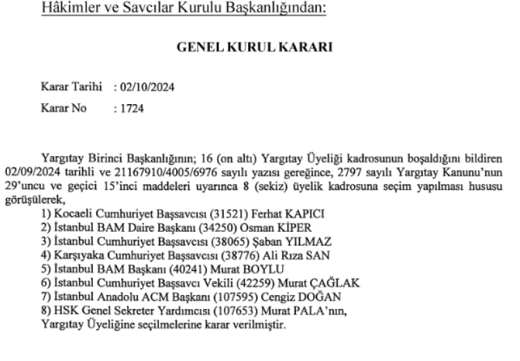 Yargıtay üyeliklerine seçilienler şu isimler oldu: