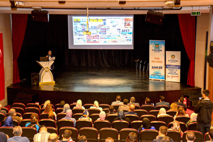 MALATYA (İGFA) – Malatya Büyükşehir Belediyesi Çevre Koruma, İklim Değişikliği ve Sıfır Atık Şube Müdürlüğü ile Fen İşleri Dairesi Enerji Aydınlatma Müdürlüğü tarafından MABESEM konferans salonunda verilen hizmet içi farkındalık eğitiminde “İklim Değişiyor Biz Neden Değişmiyoruz”, “Yenilenebilir Enerji” ve “Enerji Tasarrufu ve Enerji Verimliliği” konularına yer verildi. Eğitim semineri, Büyükşehir Belediyesi Çevre Koruma, İklim Değişikliği ve Sıfır Atık Şube Müdürlüğü çalışanlarından Kimya Mühendisi Özden Şahin ve Fen İşleri Dairesi Enerji Aydınlatma Şube Müdürü Akif Şekerci tarafından verildi.