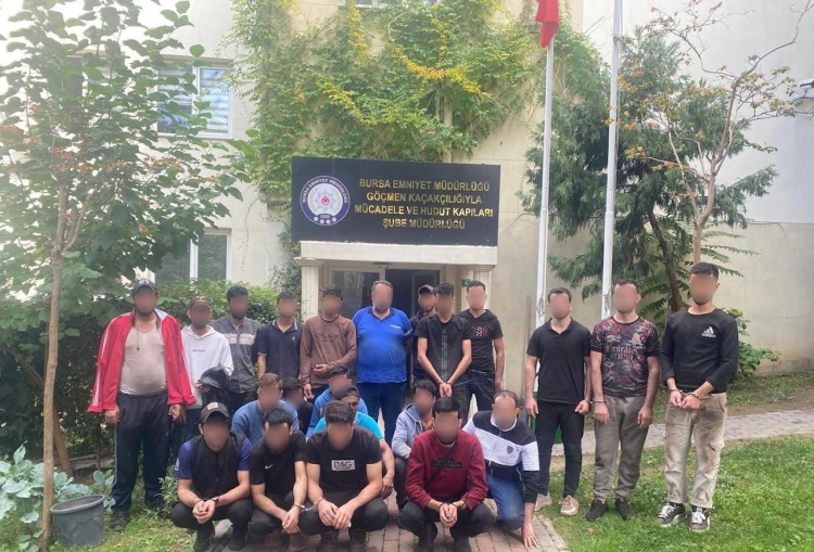 Bursa’da bir kereste atölyesine düzenlenen baskında, 2 göçmen kaçakçısı gözaltına alınırken, atölye içeresindeki odalarda kaldıkları belirlenen 14’ü kaçak, 2’si izinsiz ve 6’sı geçici koruma kimliği bulunan 22 göçmen olduğu tespit edildi.