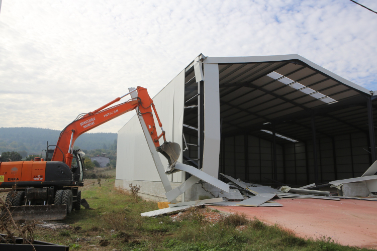 Nilüfer Belediyesi, kaçak yapılarla mücadele kapsamında Tahtalı Mahallesi’nde tarım alanı üzerine imara aykırı inşa edilen 800 metrekarelik depoyu tamamen yıktı.