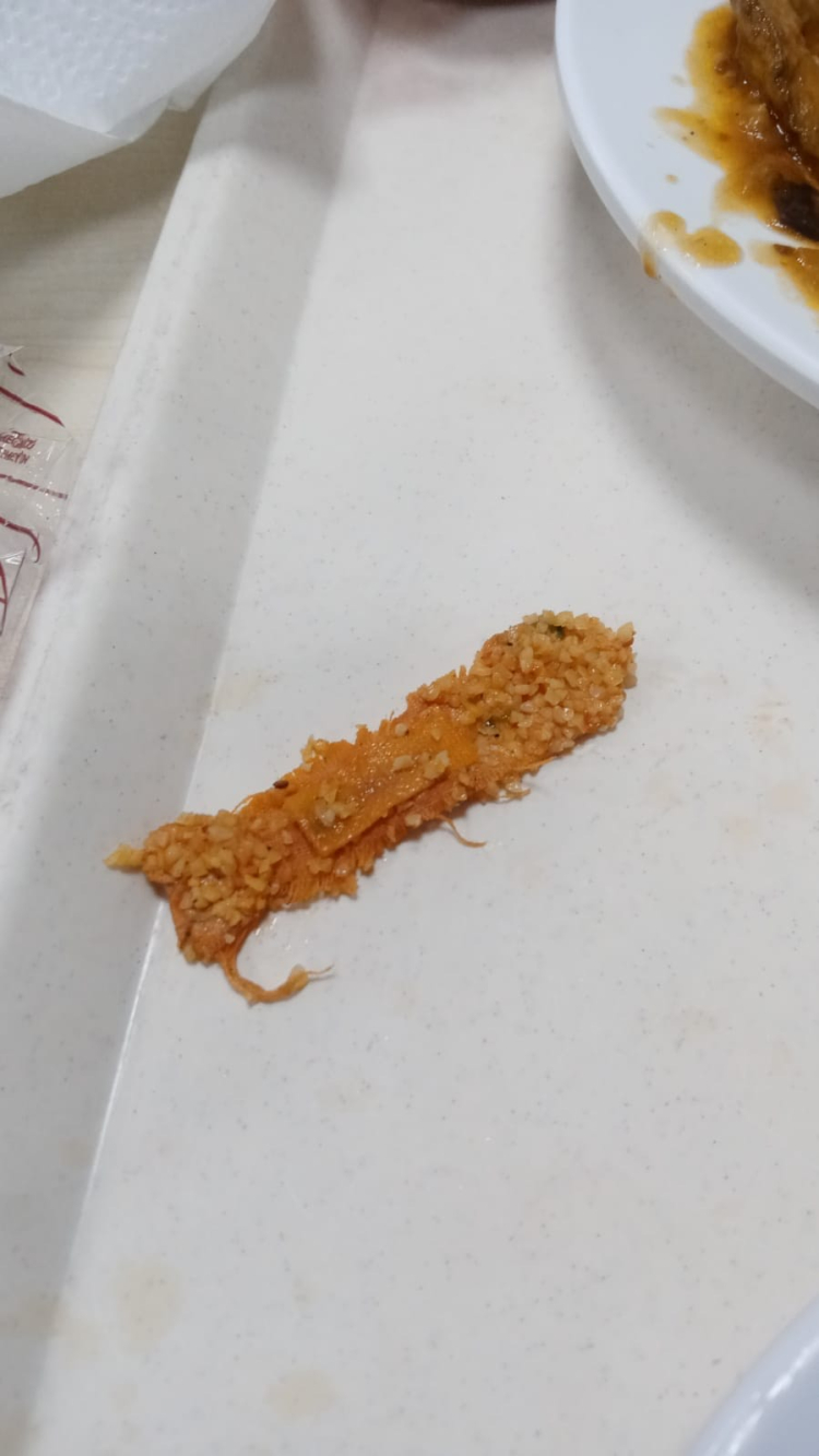 Farklı günlerde fabrikaya gelen yemeklerin içinde önce yara bandı çıktı sonra kahvaltı olarak verilen poğaçanın içinden zımba teli olduğu düşünülen yabancı bir madde çıktı.