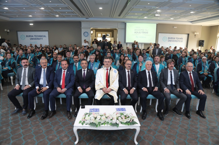 BURSA (İGFA) – Bursa Teknik Üniversitesi 2024-2025 Akademik Yılı, Mimar Sinan Yerleşkesi Turkuaz Salon’da düzenlenen törenle başladı. Törene; AK Parti Bursa Milletvekilleri Refik Özen ve Osman Mesten, Bursa Büyükşehir Belediye Başkanı Mustafa Bozbey, Savunma Sanayii Başkanlığı Başkan Yardımcısı Prof. Dr. Hakan Karataş, Bursa Cumhuriyet Başsavcısı Ramazan Solmaz, Bursa Adli Yargı Mahkemesi Adalet Komisyonu Başkanı Ömer Gülmüş, Bursa Bölge Adliye Mahkemesi Başkanı Abdulkadir Şahin, Bursa Bölge Adliye Mahkemesi Cumhuriyet Başsavcısı, Sadık Bölek, Bursa Uludağ Üniversitesi Rektörü Prof. Dr. Ferudun Yılmaz, Mudanya Üniversitesi Rektörü Prof. Dr. Emin Karip, Bursa Vali Yardımcısı Salih Altun, Yıldırım Kaymakamı Metin Esen, Gürsu Kaymakamı Naif Yavuz, Yıldırım Belediye Başkanı Oktay Yılmaz, akademisyenler ve öğrenciler katıldı.