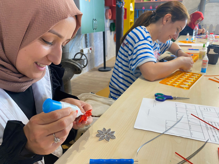 4 haftalık quilling eğitimine katılım sağlayan eğitmenler, hayal güçlerini konuşturarak kendilerine özgü quilling tasarımları oluşturdu. Quilling eğitmeni Neşe Saka, katılımcılara Quilling’in temellerini öğreterek, hayal güçlerini geliştirmelerine yardımcı oldu.