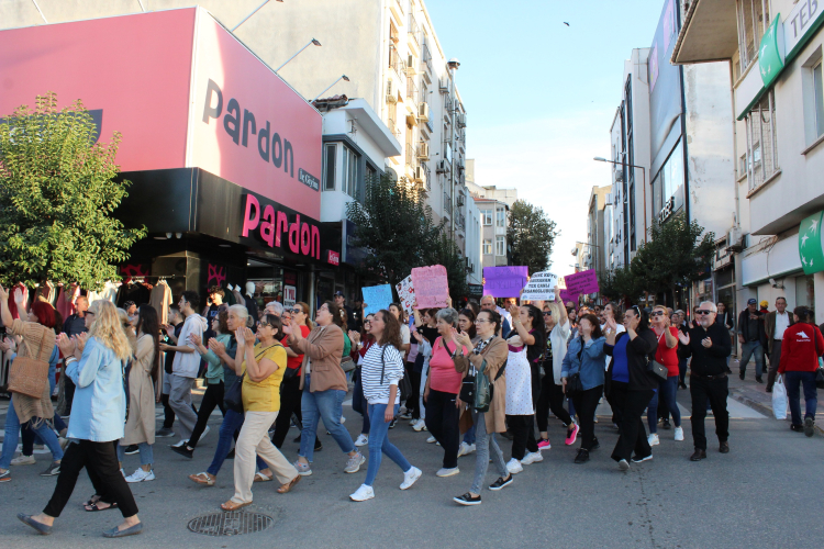 Erdoğan DEMİR / EDİRNE (İGFA) – Saat 17.00’de Keşan Kent Müzesi önünden başlayan yürüyüşte toplanan kalabalık Hastane Caddesi, İsmet İnönü Caddesi’nden Cumhuriyet Meydanı’na kadar ellerinde pankartlar ve sloganlarla yürüdüler.