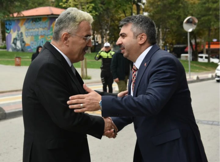 Bursa Valisi Erol Ayyıldız, Bursa Yıldırım Belediye Başkanı Oktay Yılmaz’ı makamında ziyaret etti. Enver GÜLER / BURSA...