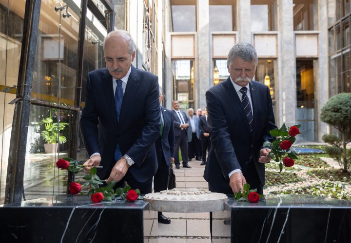 TBMM Başkanı Numan Kurtulmuş, Meclis’te bir araya geldiği Macaristan Ulusal Meclis Başkanı Laszlo Köver ile Türkiye ve...