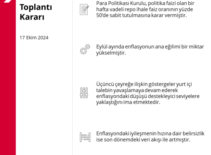 Merkez Bankası Para Politikası Kurulu (PPK), politika faizi olan bir hafta vadeli repo ihale faiz oranını değiştirmeyerek...