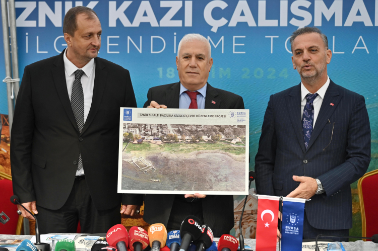 Bursa Büyükşehir Belediye Başkanı Mustafa Bozbey, 2014 yılında keşfedilen ve aynı yıl en önemli 10 keşif arasında gösterilen İznik Su Altı Bazilikal Kilisesi’nin, Birinci Konsil’in kabulünün 1700’üncü yılı olan 2025 yılında ziyaretçilerine kapılarını açacağını söyledi. Başkan Bozbey, “2025 yılı İznik ve Bursa için önemli bir yıldır. Dünyada İznik’in ve Bursa’nın yerinin önemli olduğu vurgusunu oluşturmalıyız. Bu algıyı oluşturursak bölgeye ve Bursa’ya daha fazla turist gelecektir” dedi.