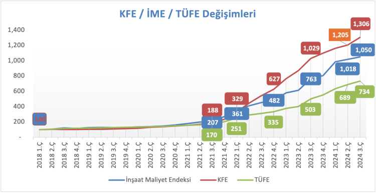 Budakoğlu; “2018 yılının 1. çeyreği 100 baz kabul edilerek İnşaat Maliyet Endeksi, Konut Fiyat Endeksi ve TÜFE kıyaslandığında ayrışmanın başladığı 2021’in 3. çeyreğinden itibaren inşaat maliyeti ve konut değerlerinin enflasyonun üstünde gerçekleştiği görülmektedir. Konut fiyatlarının enflasyonun üstünde getiri sağlaması, satışların artmasında önemli bir etkendir.” dedi.