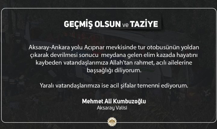 Aksaray’da yolcu otobüsünün devrilmesi sonucu 7 kişi hayatını kaybetti, 33 kişi yaralandı. Aksaray Valisi Mehmet Ali Kumbuzoğlu,...