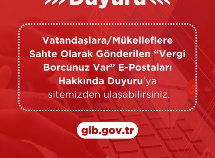 Gelir İdaresi Başkanlığı, sahte “vergi borcunuz var” e-postalarına karşı vatandaş ve mükellefleri uyardı. ANKARA (İGFA) – Vatandaşlara...