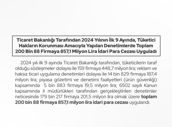 Ticaret Bakanlığı’nca dijital platform ve internet servis sağlayıcı şirketlere 24 milyon lira ceza uygulandı. ANKARA (İGFA) –...