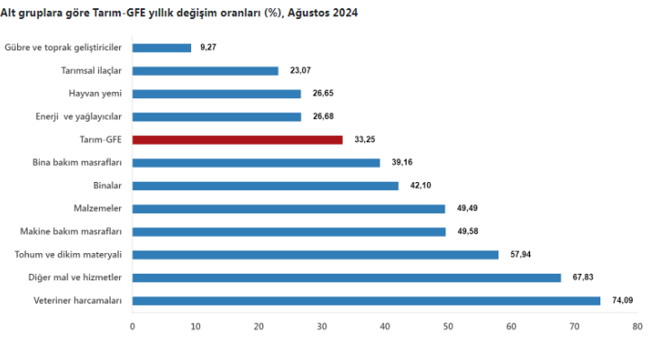 Tarımsal girdi fiyat endeksi (Tarım-GFE) yıllık yüzde 33,25 arttı, aylık yüzde 1,39 arttı. Yıllık değişimin en yüksek...