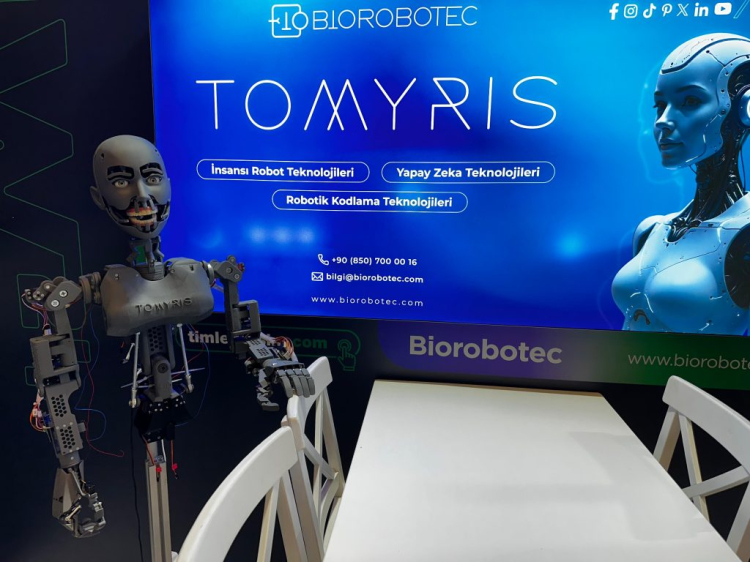 Biorobotec, Bursa Uludağ Üniversitesi iş birliğiyle çalışmalarını sürdüren Türkiye’nin ilk insansı robotu Tomyris’i tanıttı. Gelişmiş yapay zeka ile 9 duygu durumu gösterebilen yeteneği ile insanlarla daha doğal etkileşimler kuracak Tomyris, Cumhurbaşkanı Erdoğan’dan kendisi için Türk vatandaşlığı talep etti.