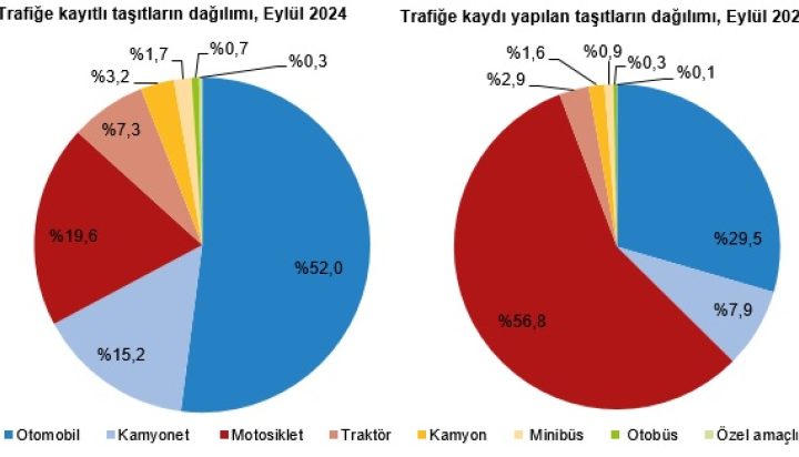 Eylül ayında 212 bin 451 adet taşıtın trafiğe kaydı yapıldı. TÜİK’in Motorlu Kara Taşıtları’nda son verilere göre,...