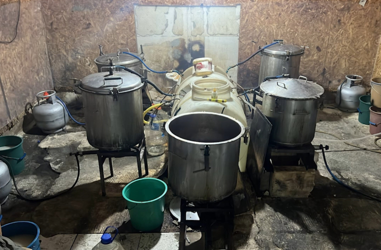 Son olarak Mudanya’da S.Ö isimli bir şahsın fermantasyon yöntemiyle sahte alkol üretimi yaptığı ve bu alkolleri el altından piyasaya sürerek haksız kazanç elde ettiğini tespit eden ekipler, S.Ö.’ye ait depoya baskın düzenledi.