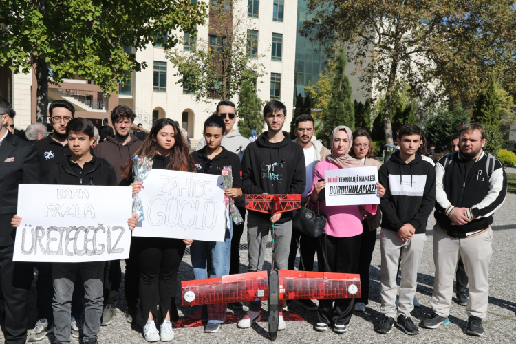 Ankara Kahramankazan’da milli savunma sanayi tesisi TUSAŞ’a düzenlenen terör saldırısına Bursa Teknik Üniversitesinden (BTÜ) tepki geldi. BTÜ Rektörü Prof. Dr. Naci Çağlar’ın da katılımıyla basın açıklaması düzenleyen öğrenciler, “Vatan savunmasının eli kalem tutan neferleri olarak, ordumuzun ve kolluk kuvvetlerimizin ayaklarına taş değmemesi için bu yoldan dönmeyeceğiz” dedi.