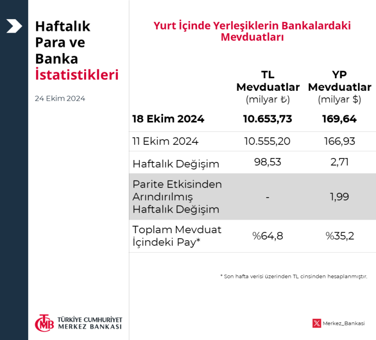ANKARA (İGFA) – Merkez Bankası, haftalık para ve banka istatistiklerini açıkladı.