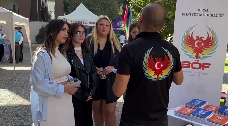 BURSA (İGFA) – Bursa İl Emniyet Müdürlüğü’ne bağlı Terörle Mücadele Şube Müdürlüğü görevlileri, Bilgilendirme ve Önleme Faaliyetleri (BÖF) kapsamında “El Ele Güvenli Geleceğe“ isimli Bilgilendirme Stantları ile 2024-2025 Eğitim-Öğretim döneminde Bursa’daki üniversitelere kayıt yaptıran ve halen öğrenim görmeye devam eden öğrencilere yönelik bilgilendirme çalışması yaptı.