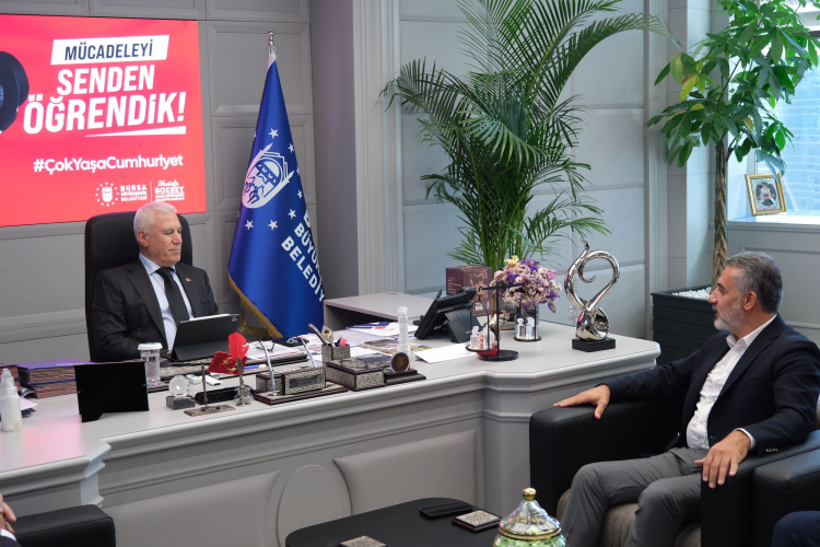 BURSA (İGFA) – Başkan Bozbey buluşmada, iş dünyasının Bursa ekonomisine sağladığı katkıların önemine vurgu yaptı. Alparslan Şenocak ise, MÜSİAD olarak Bursa’nın her alandaki potansiyelini daha da yükseltmek adına yapılacak ortak çalışmalarda Büyükşehir Belediyesi başta olmak üzere kent dinamikleriyle iş birliği içinde çalışmaya devam edeceklerini ifade etti. Şenocak, Başkan Bozbey’e MÜSİAD’ın çalışmaları hakkında da bilgiler verdi.