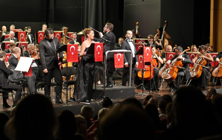 Mustafa Kemal Atatürk önderliğinde gerçekleşen kurtuluş mücadelesini, halkın cesaretini ve vatan sevgisini anlatan “Bir Ulus Uyanıyor” eserinde, Mezzo Soprano Aylin Ateş, Tenor Ufuk Toker ve Bariton Caner Akgün solist olarak yer alırken; anlatımı Metin Yazarı Ersin Antep gerçekleştirdi.