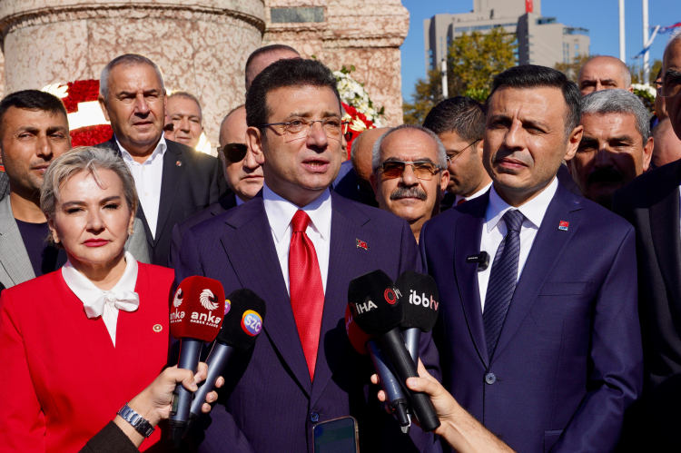 Anıt önünde, katılımcılarla birlikte anı fotoğrafı çektiren İmamoğlu, burada yaptığı açıklamada vatandaşları Cumhuriyet Bayramı kutlamalarına davet etti.