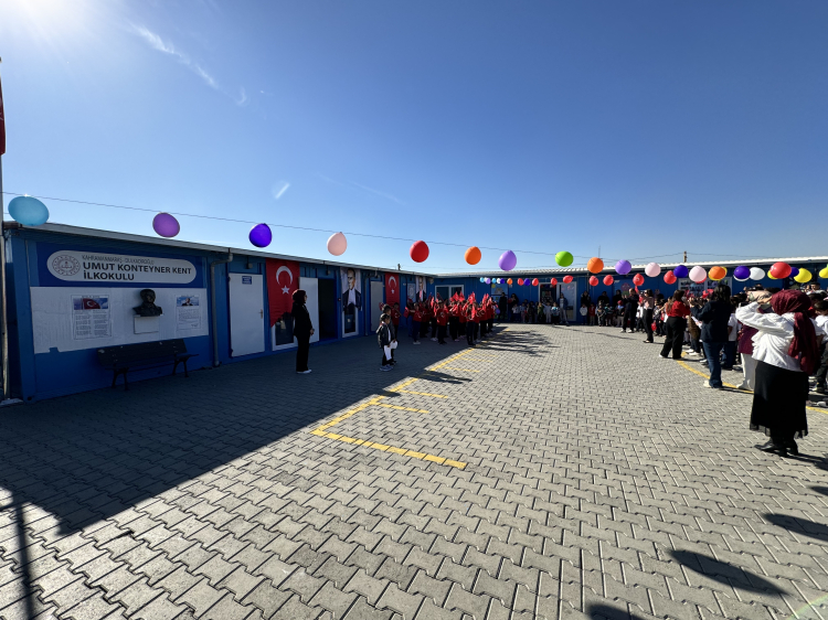 Kahramanmaraş’ın Dulkadiroğlu ilçesinde bulunan Umut Konteyner Kent İlk ve Ortaokulu’nda Cumhuriyet’in 101. yılı, coşkuyla kutlandı.
