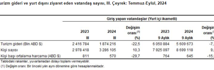 Türkiye’nin turizm geliri, yılın üçüncü çeyreğinde geçen yılın aynı dönemine göre yüzde 3,9 artarak 23 milyar 219...