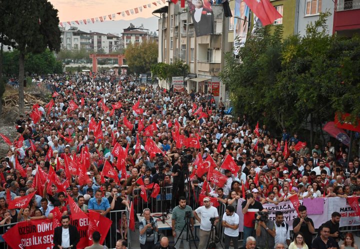 CHP Genel Başkanı Özgür Özel ile birlikte Hatay’ın Defne ilçesine giderek halk buluşmasına katılan Bursa Büyükşehir Belediye...
