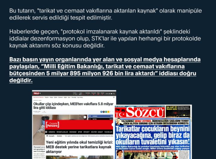Milli Eğitim Bakanlığı’nın tarikat ve cemaat vakıflarına bütçesinden 5 milyar 895 milyon 926 bin lira aktardı yönündeki...