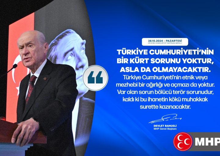 MHP Genel Başkanı Devlet Bahçeli, 29 Ekim Cumhuriyet Bayramı dolayısıyla yayınladığı mesajında Türkiye Cumhuriyeti’nin bir Kürt sorunu...
