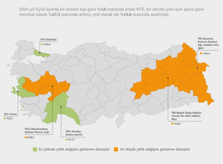 2024 yılı Eylül ayı itibariyle, 2023’ün aynı dönemine göre konut fiyat endeksi İstanbul’da yüzde 23.4, Ankara’da yüzde...