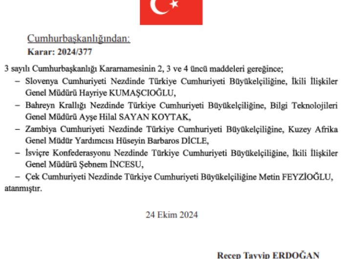 Cumhurbaşkanı Recep Tayyip Erdoğan imzasıyla yayımlanan kararlara göre, 5 ülkenin Türkiye Cumhuriyeti Büyükelçiliğine atamalar yapıldı. Atamalarda eski...