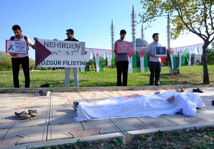 Bursa Gönüllü Kuruluşlar Platformu organizasyonunda toplanan Uludağ Üniversitesi öğrencileri, ‘Zulüm Altındaki Sağlık Çalışanları ve Basın Mensuplarına Destek...