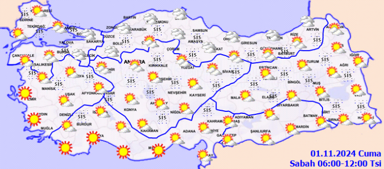 ANKARA (İGFA) – Meteoroloji Genel Müdürlüğü 1 Kasım Cuma gününe ilişkin günlük hava tahmin raporunu yayınladı.
