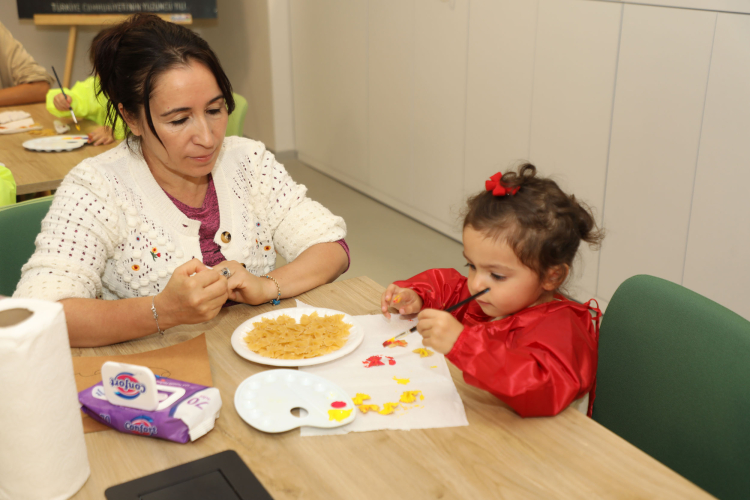 Farklı atölyelerle çocukların etkinlikler yaptığı Oyuncak Kütüphanesi ve Eğitim Merkezi’nde her hafta yapılan 2-3 ve 4-6 yaş arası çocukların anneleriyle katıldığı Anne-Çocuk atölyesinde çocuklar sosyalleşirken anneleri ile de bağları kuvvetleniyor. ‘Kolye yapıyorum’, ‘Mandalı Açalım’, ‘Mutlu Güneş’ ‘Kirpim Makarnadan’ gibi çeşitli eğitimlerle çocukların el becerileri gelişirken sosyalleşmeleri de sağlanıyor.
