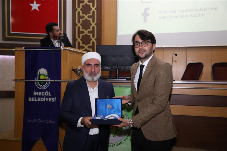 Aile Okulu’nun 3’üncü haftasında, Medrese Alimleri Vakfı (MEDAV) Başkanı Tayyip Elçi, Cuma akşamı Sani Konukoğlu Konferans Salonunda “Kuran Işığında Çocuk Terbiyesi ve Eğitimi” konulu seminerde İnegöllülerle buluştu.