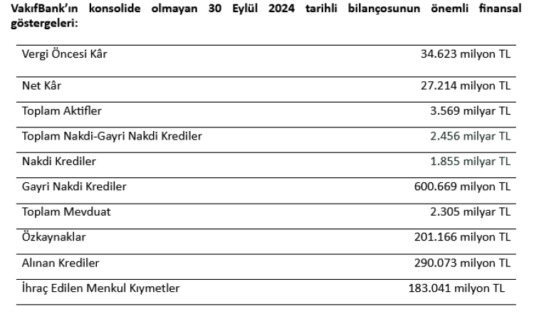 VakıfBank aynı dönemde 34 milyar 623 milyon lira olan brüt kârından 7 milyar 409 milyon lira vergi karşılığı ayırarak, 27 milyar 214 milyon lira net kâr elde etti.