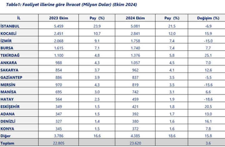 Ticaret Bakanlığı, faaliyet illeri bazında ihracat sıralamasında, 10 aylık süreçte 29 ilin 1 milyar doların üzerinde ihracat...