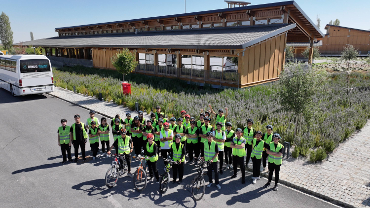 Konya Büyükşehir Belediyesi Zabıta birimlerinin ve öğretmenlerin eşlik ettiği sürüş etkinliği kapsamında öğrenciler, Çatalhöyük Tanıtım ve Karşılama Merkezi’ni de ziyaret ederek rehberlerden bilgi aldı.