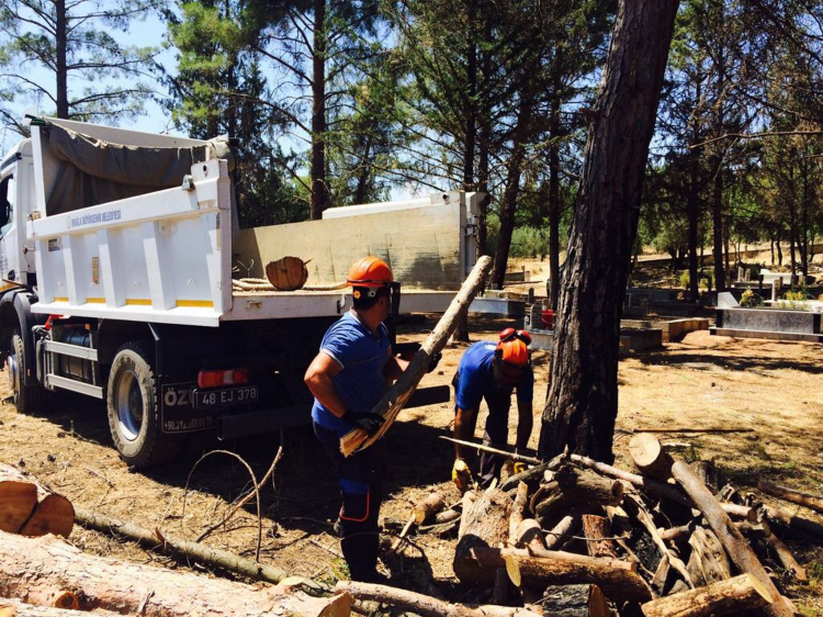 MUĞLA (İGFA) – Muğla Büyükşehir Belediyesi il genelinde sahip olduğu 1435 adet mezarlıkta temizlik, bakım ve budama çalışmalarına devam ediyor. Çalışmalar sonrasında ortaya çıkan ağaç dalları ve kurumuş odunlar, israf edilmeden değerlendiriyor.