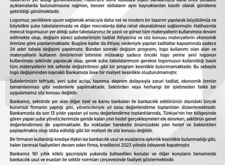 Ziraat Bankası, bazı basın yayın organları ile sosyal medya platformlarında yayımlanan ‘logo değişimi’ ve ‘bir firmanın kullandığı...