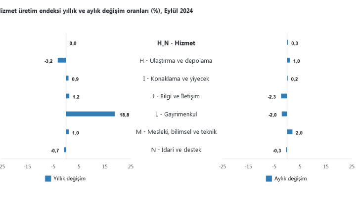 TÜİK, Hizmet Üretim Endeksi’nde Eylül ayına ilişkin verileri paylaştı. Hizmet Üretim Endeksi yıllık bazda aynı kaldı. Verilere...