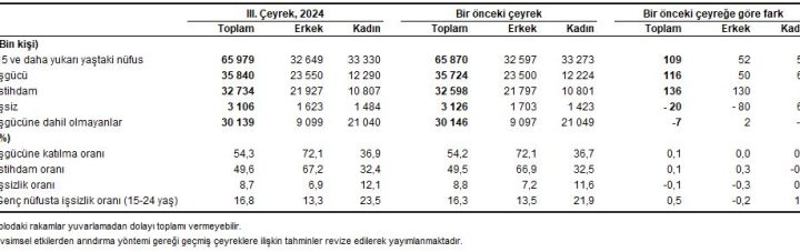 TÜİK’in açıkladığı verilere göre işsizlik oranı 0,1 puan azalışla yüzde 8,7 seviyesinde gerçekleşti. İşsizlik oranı erkeklerde yüzde...